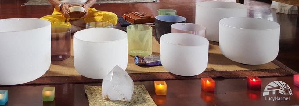 Lors d’une session de bols chantants en cristal, la situation et l’état de chaque participant est analysé afin de déterminer quelle est le type de guérison dont cette personne a besoin. Comme les bols chantants en cristal peuvent être programmés, le thérapeute porte une attention toute particulière aux intentions que chaque participant veut voir se manifester dans sa vie. Les participants se couchent sur des tapis confortables et la thérapeute joue pendant 30 minutes env. La plupart des participants font l’expérience de sortir de leur corps et d’aller au-delà du son, permettant ainsi à leur corps de guérir à un niveau cellulaire.